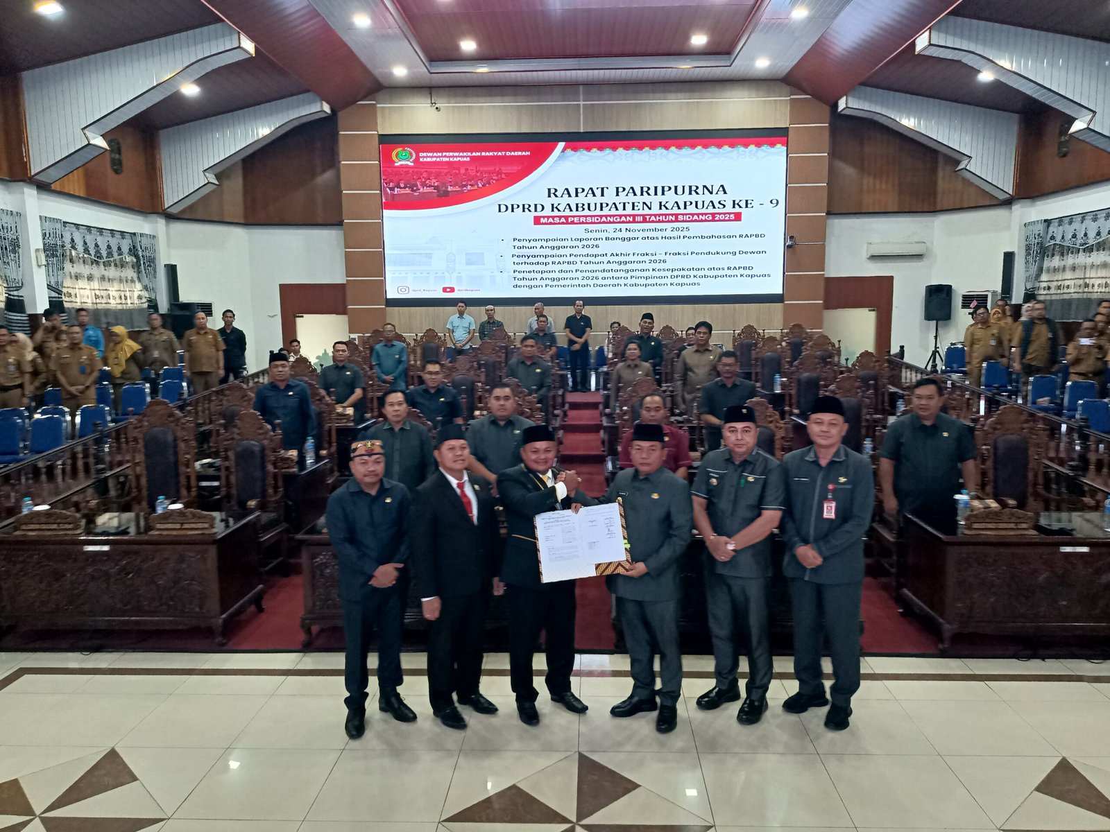 KUALA KAPUAS – Pemerintah Kabupaten Kapuas memaparkan postur lengkap Rancangan Anggaran Pendapatan dan Belanja Daerah (RAPBD) tahun anggaran 2026 yang mencapai Rp2,574 triliun, dalam Paripurna DPRD Kapuas, Senin (24/11).