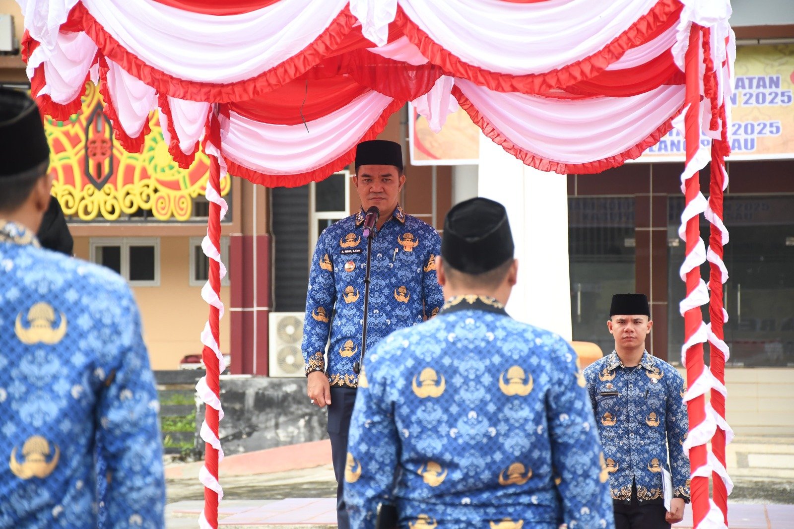 PULANG PISAU — Bupati Pulang Pisau H Ahmad Rifa’i menegaskan bahwa penguatan integritas, profesionalisme, serta kualitas pelayanan publik harus menjadi roh pengabdian Aparatur Sipil Negara (ASN). Hal itu disampaikannya saat memimpin Upacara Peringatan Hari Guru Nasional dan Hari KORPRI ke-54 Tahun 2025 di Halaman Kantor Bupati Pulang Pisau, Jumat (28/11/2025).