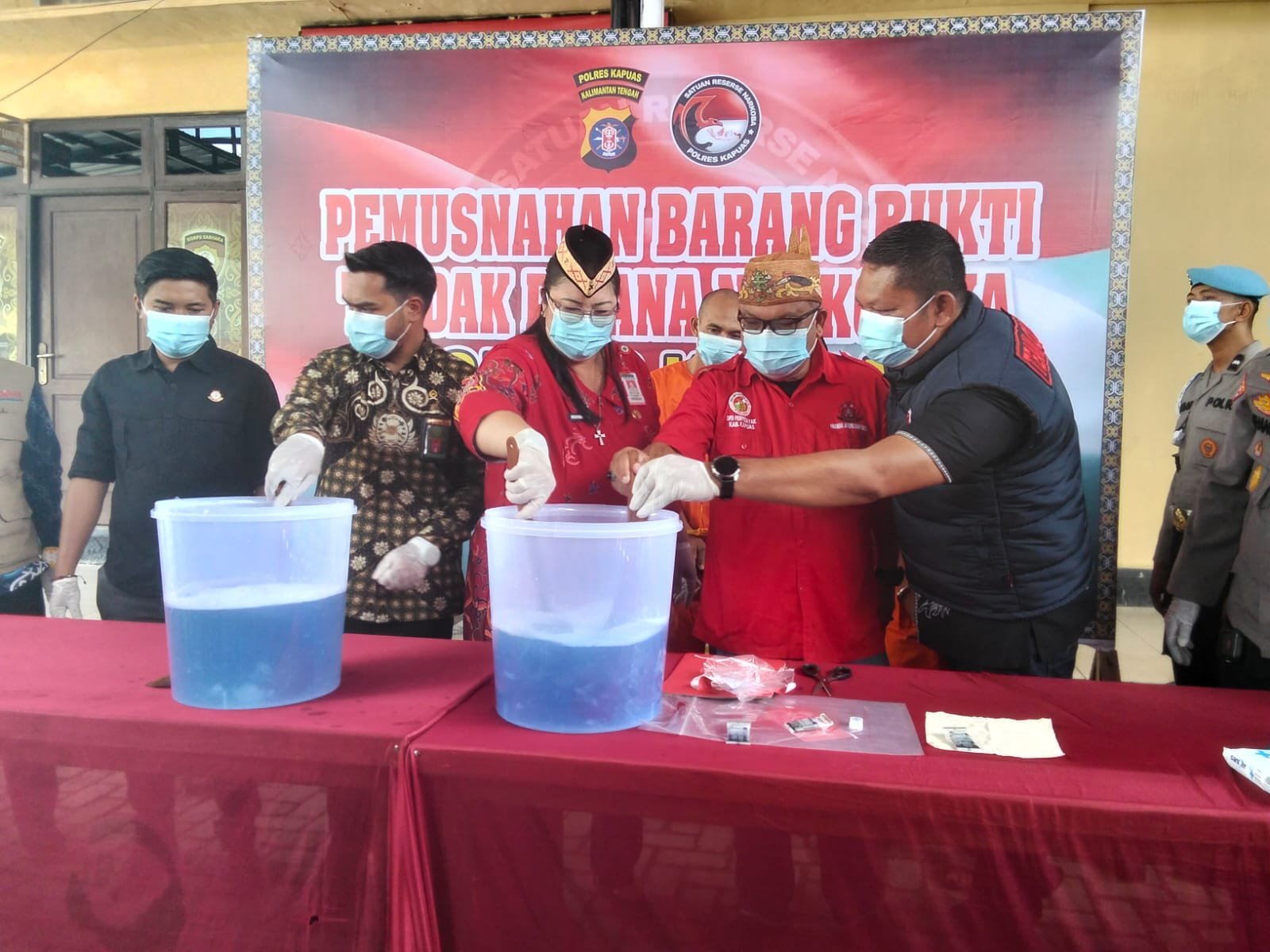 Barang bukti sabu-sabu tersebut dimusnahkan dengan cara dilarutkan menggunakan cairan pembersih lantai di halaman Mapolres Kapuas. Kegiatan ini disaksikan oleh unsur Pengadilan Negeri Kapuas, Kejaksaan Negeri Kapuas, Asisten II Sekda Kapuas Kusmiatie, serta instansi terkait lainnya.