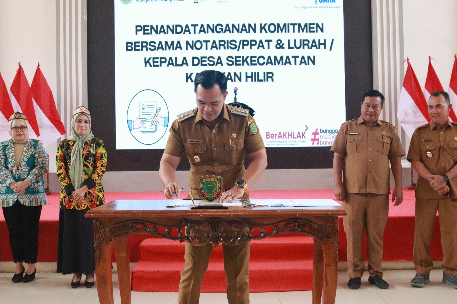 Selain inovasi digital, Pemerintah Kabupaten Pulang Pisau turut memperkuat kolaborasi lintas sektor melalui penandatanganan komitmen bersama Notaris dan PPAT. Sinergi ini dinilai penting untuk memastikan proses administrasi pertanahan dan perizinan berjalan tertib, efisien, dan sesuai regulasi.